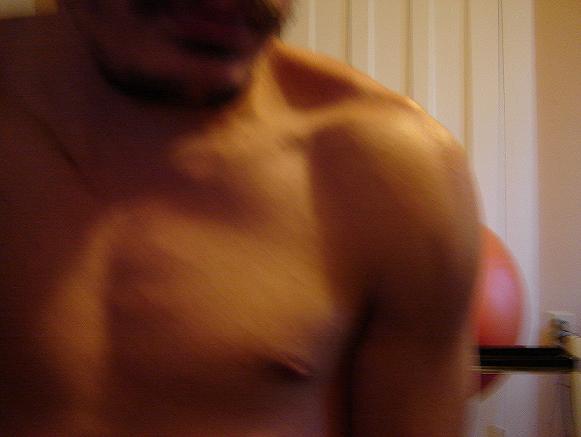 My pecs are getting a little better by training them only a strict one day a week, doing just a few exercises for the chest. BeachBody or Boflex didn’t give me that look.