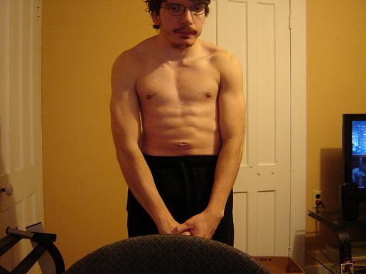 Just took this one a few minutes ago. Notice the difference? The pecs are getting a little bigger like I said, so yeah, I’m doing good. Body fat has also gotten a little lower too, seeing more abs.