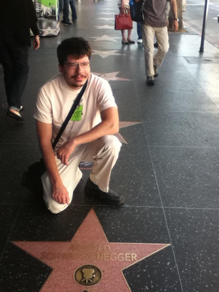The first photo above is me at Arnold’s star at the Hollywood Walk of Fame. The bottom photo is me at a Hollywood wax museum. I posted these in honor of Arnold’s birthday today.