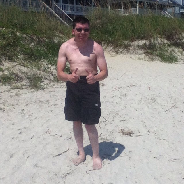 Here’s a shirtless beach photo of me. I’m not afraid to go shirtless in public anymore like I used to be thanks for me getting into bodybuilding that helped.