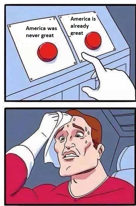 Their “America was never great” argument is pretty ludicrous. America has been here for 240 years and all those 240 years, they wanna say that “America was never great”? You know that’s a bullshit claim ’cause sometimes America is great and sometimes it isn’t. You know that too. Like I said, you would say anything to make Trump and his supporters look bad. There were times when America was great. Get over yourselves. When you make that claim that “America was never great”, that sounds really anti-America, 100%.